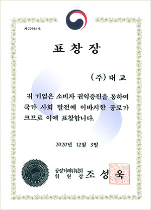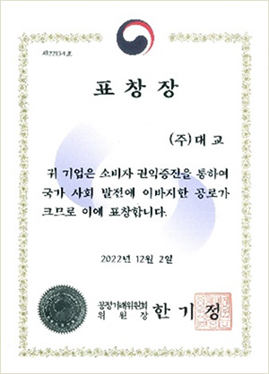 대교는 소비자 중심 경영 활동과 소비자 권익 제고를 위해 노력한 결과,
